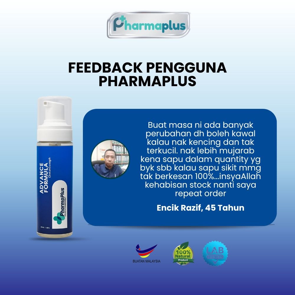 Polisi Pemuulangan Wang: Pulangan Wang Akan Diberikan Sekiranya Tiada Sebarang Perubahan Setelah 90 Hari Amalkan PharmaPlus Secara Konsisten & Amalkan Sekurang-Kurangnya 2 Kali Sehari.